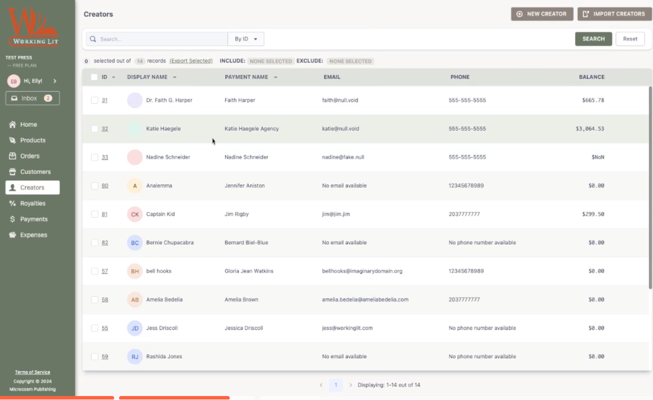 Just like with Products, Orders, and Creators, you can add customers by CSV upload OR one by one in the WorkingLit app.