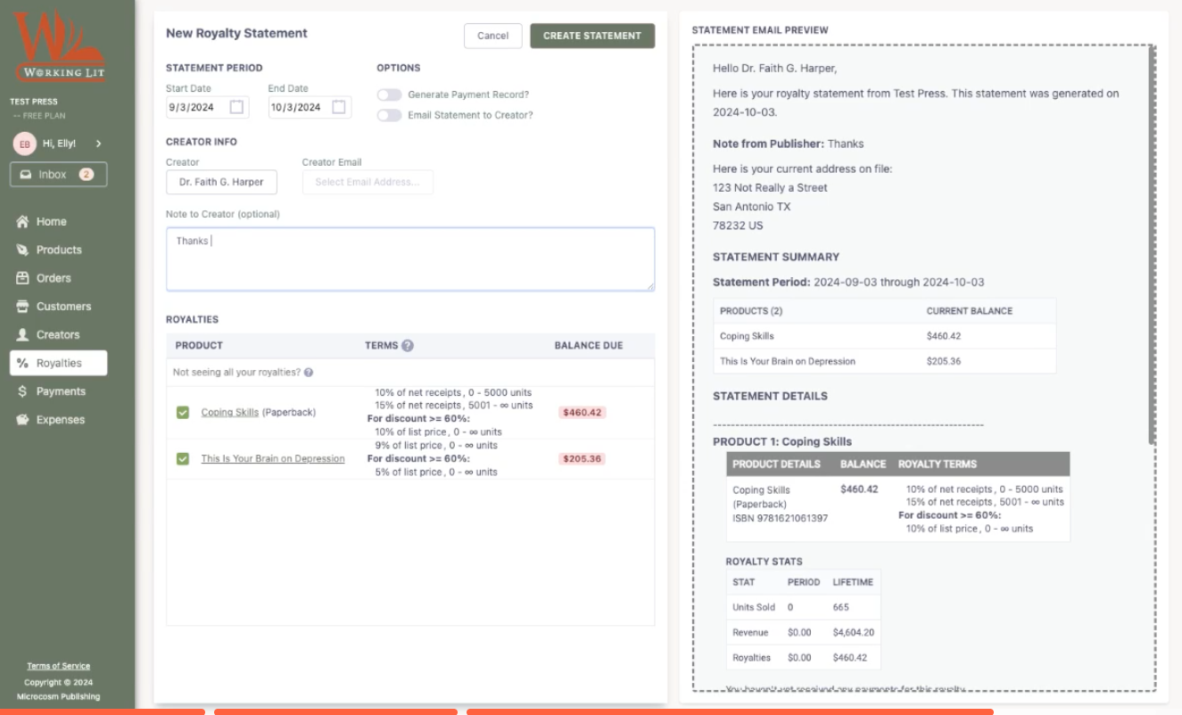 Create a Royalty Statement