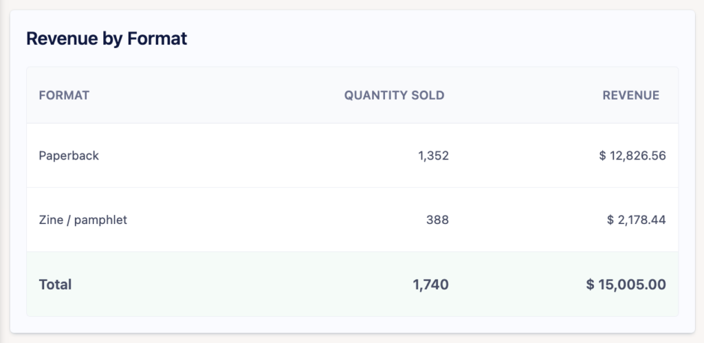 After you hit Send, they’re going to be able to see everything they need to know about the history of their book, what their royalty terms are, their current period and lifetime units sold, revenue, and royalties.