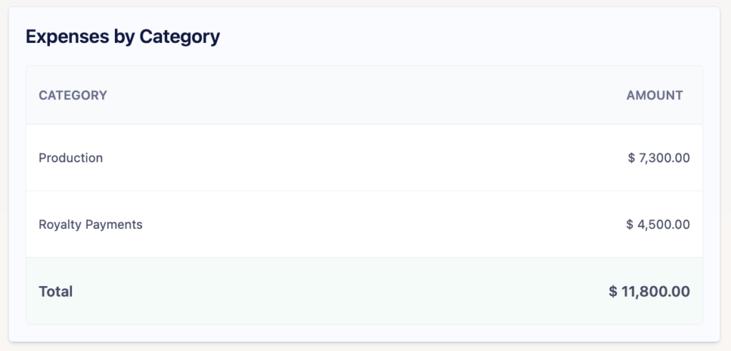 Every expense will be reflected in the Reporting section, including any royalties that deduct expenses.